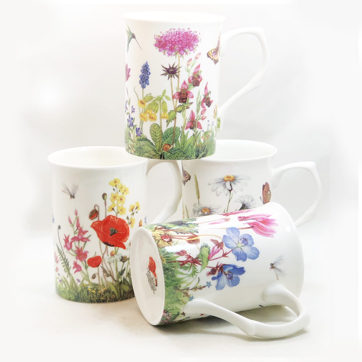 Meadow Blooms Collection - Set of 4 Fine Bone China Mugs